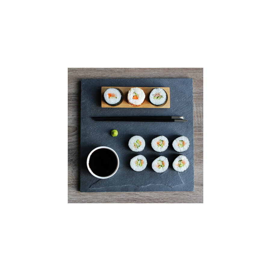 De presentatie van eten verdient minstens zo veel aandacht als de bereiding er van! Met dit prachtige leistenen serveerplateau van 30x30 cm heeft u een unieke manier om uw eten te serveren en komen de verschillende kleuren van het eten prachtig naar voren.